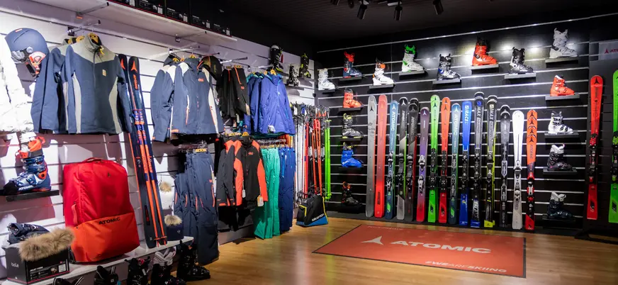 - Equipos completos de esquí: tablas, botas y bastones.