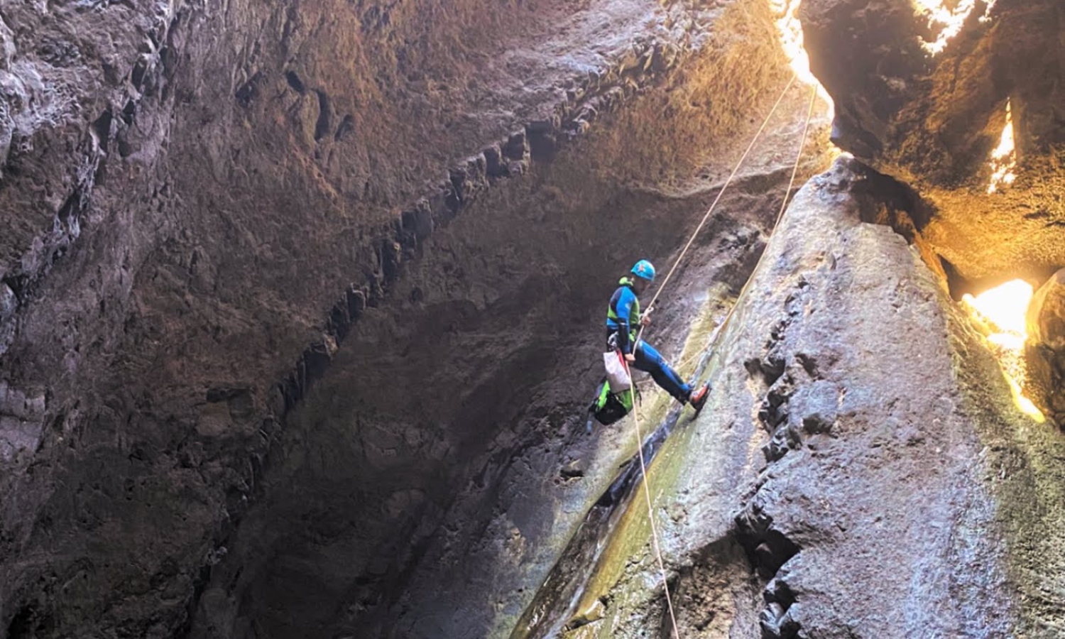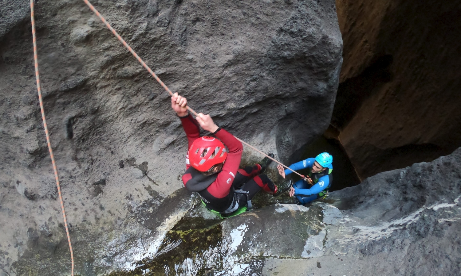 - Equipo individual y especifico de descenso de barranco, neoprenos, mochila, bote estanco, botas de senderismo