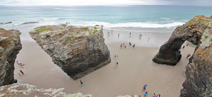 La excursión tiene en cuenta el estado de la marea para ajustar la visita, ya que el acceso a la playa y sus formaciones depende directamente del nivel del mar.