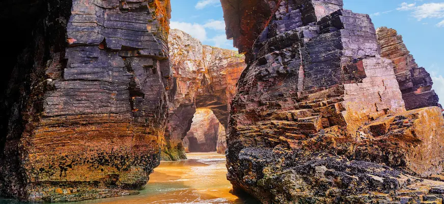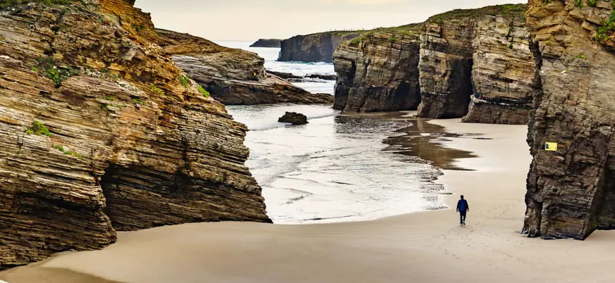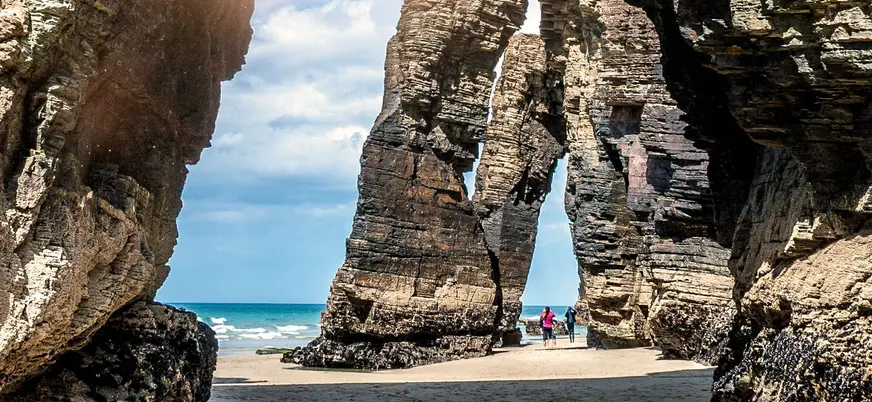 El recorrido nos llevará también hasta la playa de las Catedrales, donde accederemos sin necesidad de entrada y, si la marea lo permite, caminaremos entre sus formaciones rocosas. Un plan perfecto que combina historia, paisaje y tradición en un mismo plan para descubrir Galicia con calma.