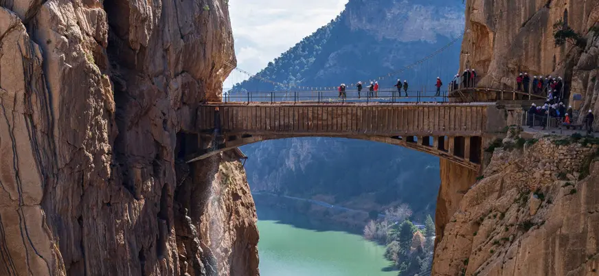 En esta excursión al Caminito del Rey desde Sevilla, descubrimos el Desfiladero de los Gaitanes, un espectacular sendero con pasarelas suspendidas a más de 100 metros de altura sobre el río. Acompañados de un guía, conoceremos la historia detrás de la construcción de la senda más famosa de Andalucía. Un plan perfecto para salir de Sevilla mezclando adrenalina, historia y naturaleza.