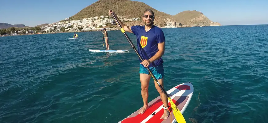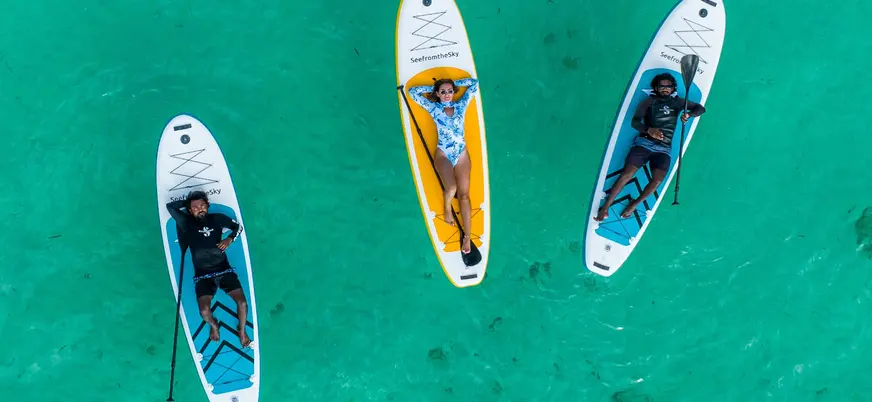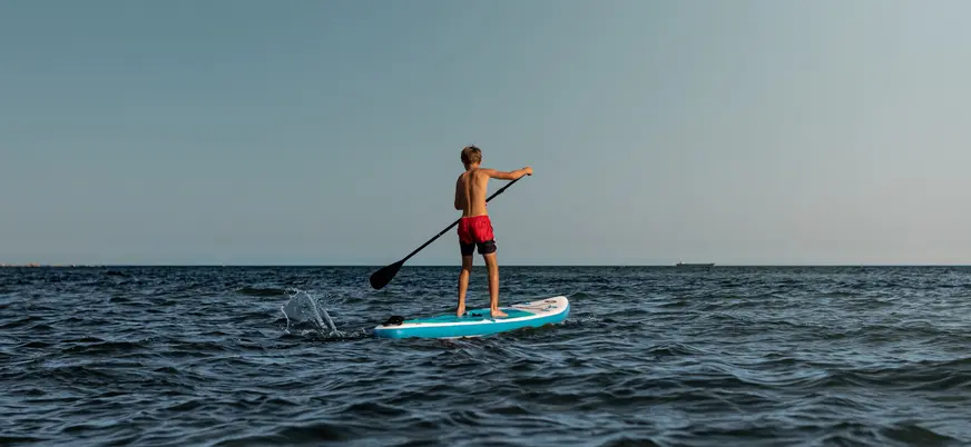 - Tabla, chaleco salvavidas y remo.