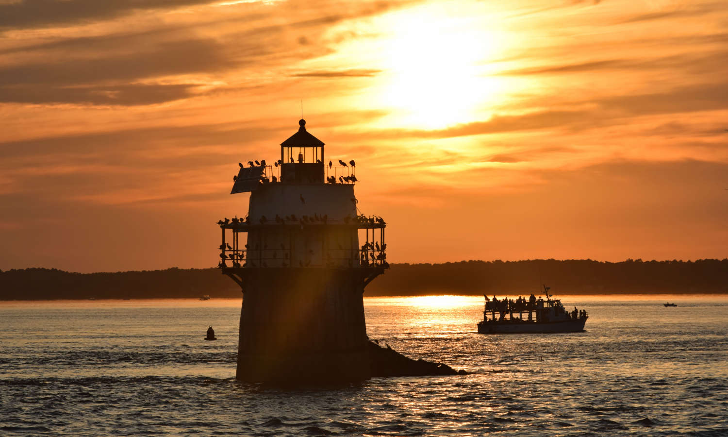 • Ruta en barco durante la puesta de sol.