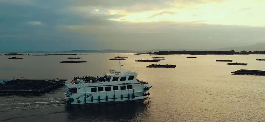 Paseo en barco en O Grove con mariscada al atardecer