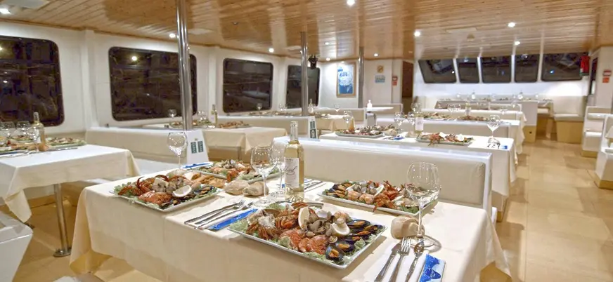 - Menú tradicional gallego con mariscada a bordo