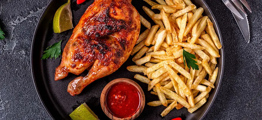 - Almuerzo y bebidas: entrantes, pollo asado, patatas fritas y ensalada, postre.