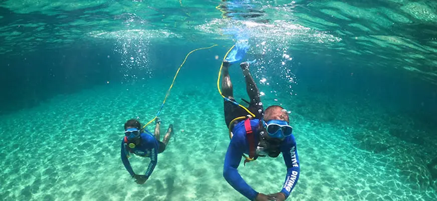 En el punto de encuentro el monitor profesional nos introduce en las nociones básicas antes de entrar al agua. A partir de ahí, el descenso revela colores y especies que hacen de cada inmersión algo difícil de olvidar.
